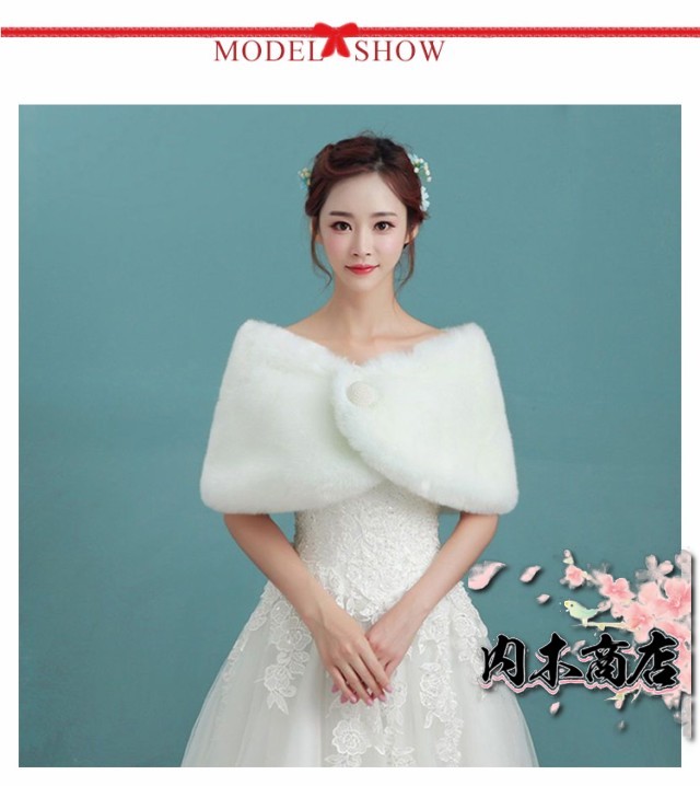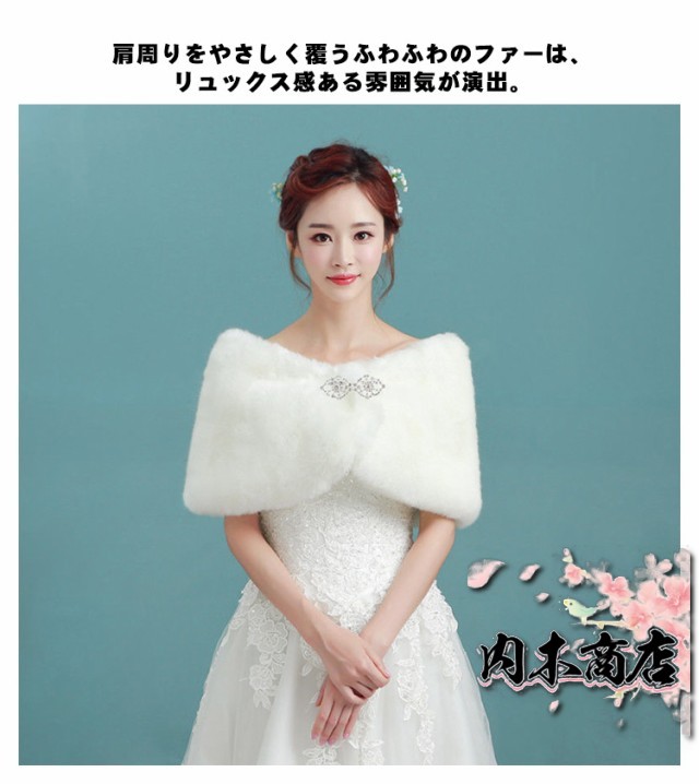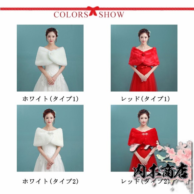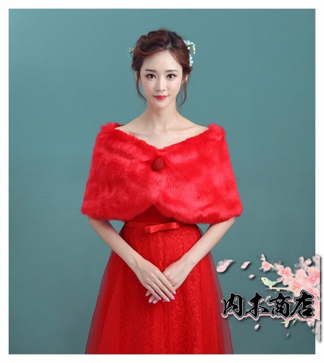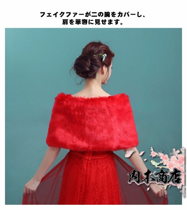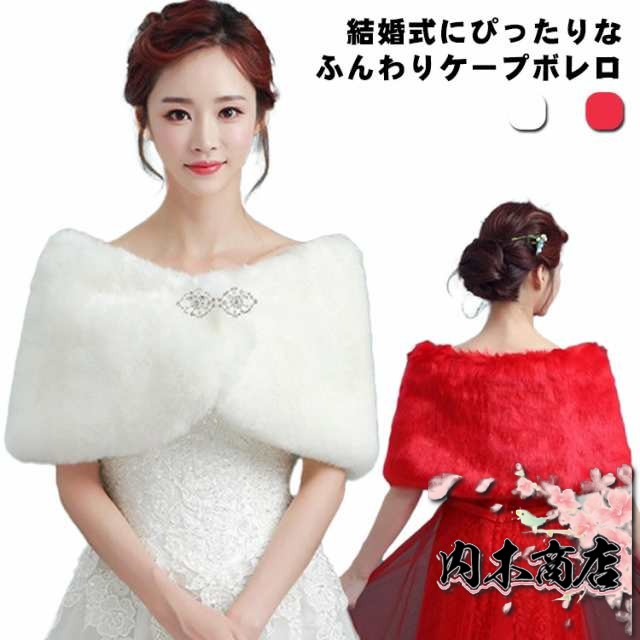 ケープ ショール フェイクファー 結婚式 花嫁 ブライダル用 ボレロ 二次会 フォーマル 演奏会 ストール 秋冬 防寒 羽織り 披露宴 お呼ばれ 成人式 同窓会 エレガント 謝恩会 ホワイト レッド 赤 着物 和装 送料無料