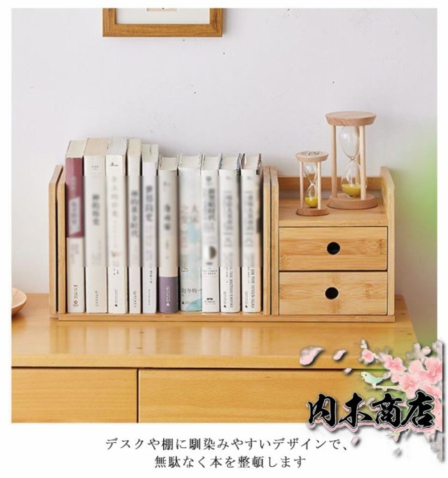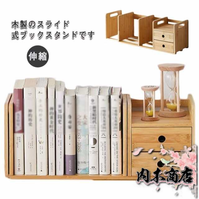 本立て ブックスタンド 木製 卓上 本棚 伸縮 引き出し付き ブックエンド シェルフ マガジンラック スリム スライド式 収納棚 片付け 多目的収納 学習 子ども キッズ 子供部屋 雑貨 おしゃれ CD DVD ラック 完成品 シンプル 絵本 送料無料