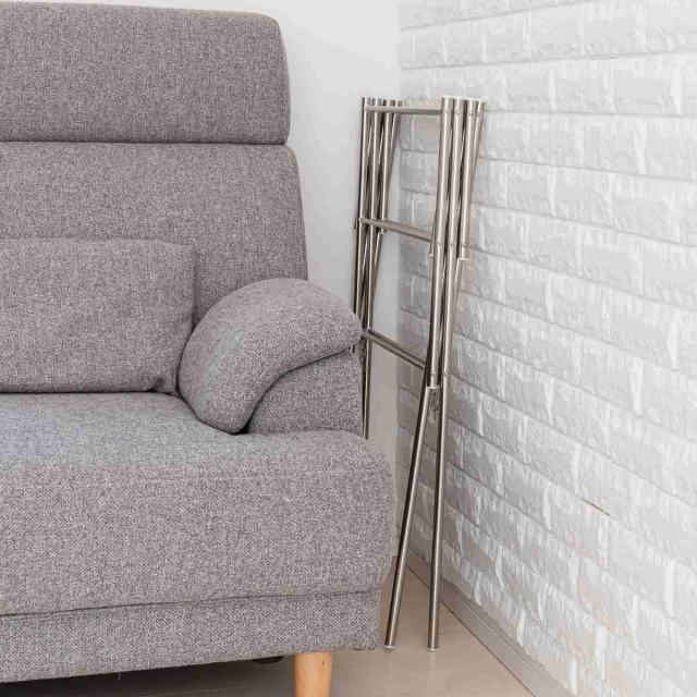 干したまま折りたたんでの移動も簡単にでき、掃除の際に便利です。また、折りたたむと約8cm幅になるので、リビングの隅や洗濯機横の隙間などにも収納できます。