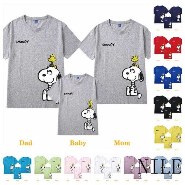 親子ペア服 親子お揃いTシャツ スヌーピー 親子ペアルック 親子ペア Tシャツ 半袖 トップス 親子お揃い 兄弟 お揃い 夏物 パパ ママ キッズ 子供服 高品質 男女兼用 親子服 新品