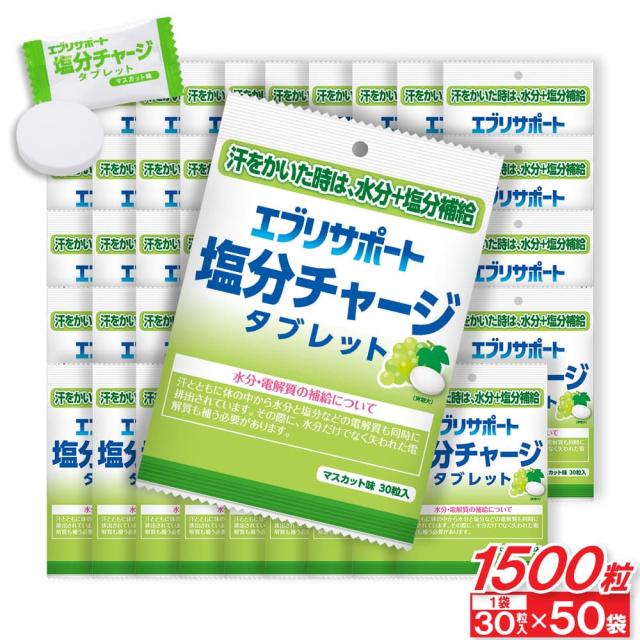 エブリサポート 塩分補給 塩分チャージ タブレット マスカット味 1500粒(30粒入×50袋) 塩分タブレット