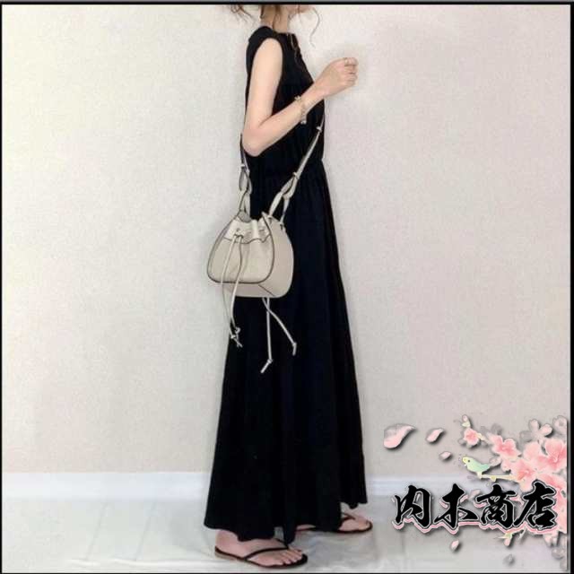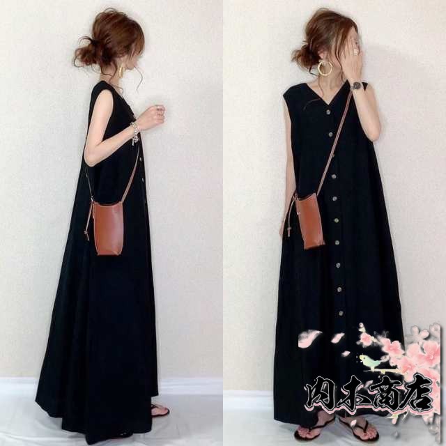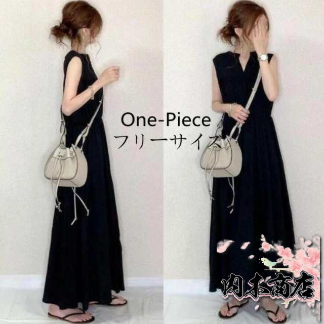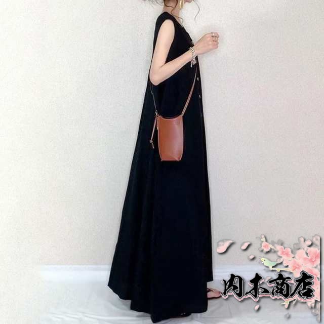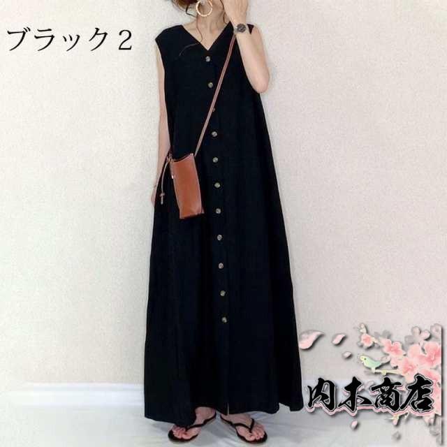 ワンピース レディース 黒ワンピ ブラック ロング丈ワンピース 可愛い おしゃれ 上品 きれいめ マキシ丈 夏ワンピース Vネック ワンサイズ 袖なしワンピース 略喪服 平服