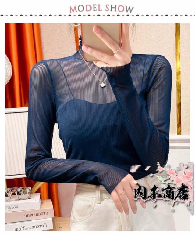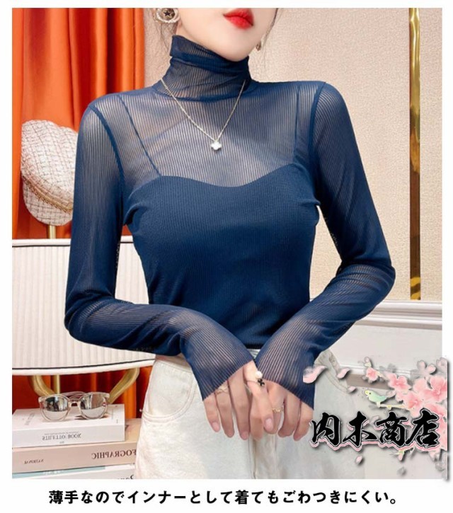 タートル シースルー トップス シャツ 長袖 シアートップス 透け感 チュール シーアーブラウス 春 夏 インナー ハイネック メッシュ カットソー 黒 セクシー シアー オフィス 通勤 カジュアル レディース ブラック 女性 30代 40代 50代 大人可愛い 送料無料 S-2XL