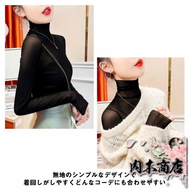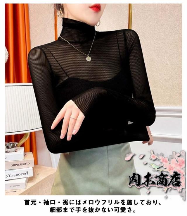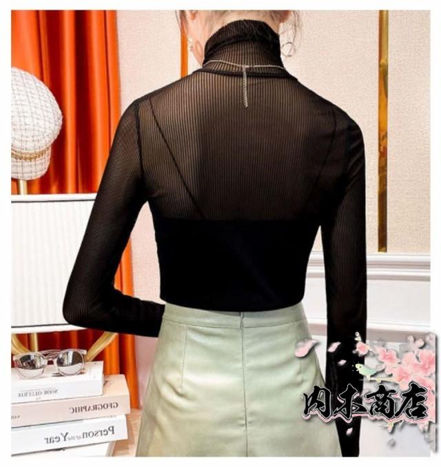 ブラック レディース オフィス 通勤 タートル シースルー トップス シャツ 長袖 シアートップス 透け感 チュール シーアーブラウス 春 夏 インナー ハイネック メッシュ カットソー 黒 セクシー シアー カジュアル 女性 30代 40代 50代