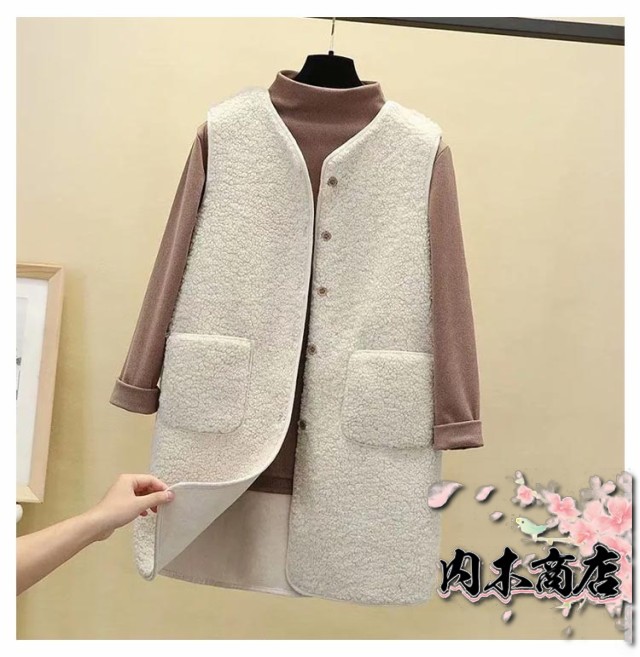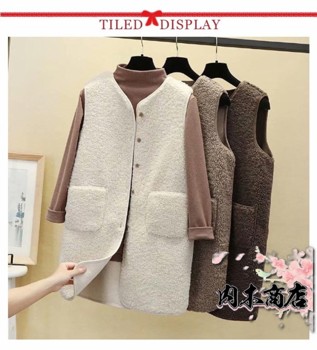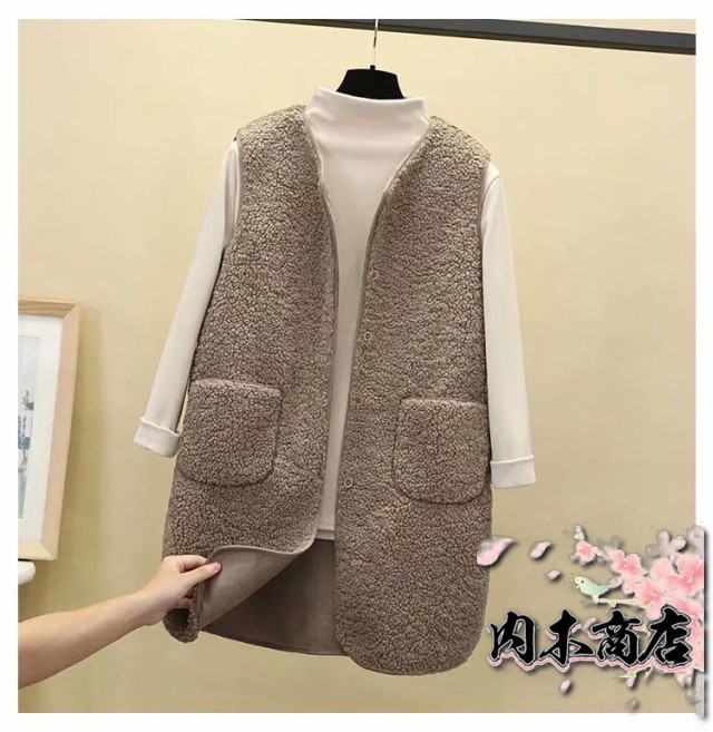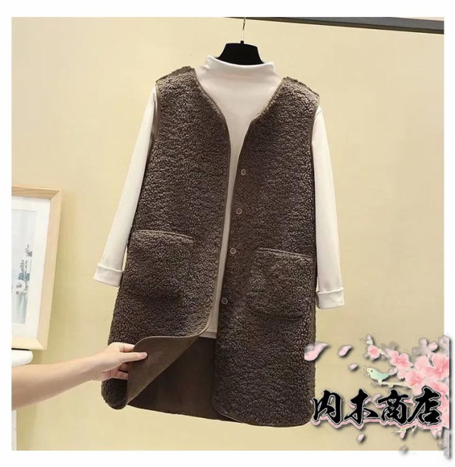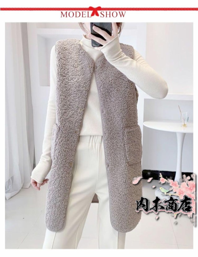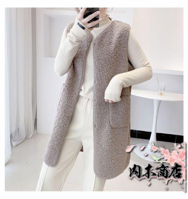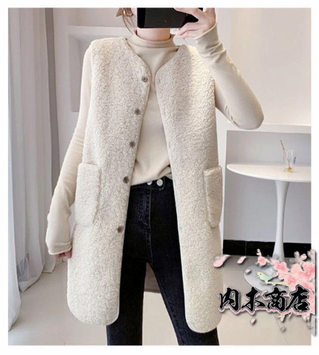 体型カバー レディース ベスト ボアベスト 女性 アウター 上着 ロングベスト ボアジャケット ノースリーブ ボア ジャケット 羽織り 袖なし ロング丈 前ボタン ポケット モコモコ あったか 暖かい 無地 お出かけ 普段使い 婦人用 S M L XL