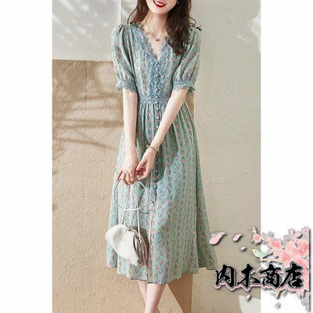 人気急上昇 数量限定入荷 レディース 在庫限りの大特価 ギフトにも最適 春夏新作 40代 パフスリーブ レースVネック 在庫わずか ワンピース シフォンスカートオシャレ韓国 半袖ワンピース SNS話題 花柄 マキシワンピース クリスマスプレゼント