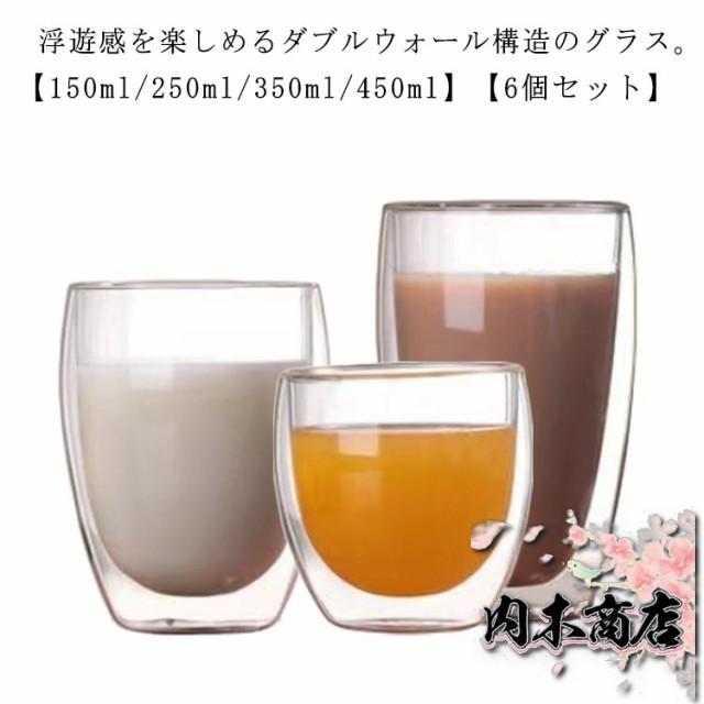 ダブルウォールグラス 6個セット 耐熱ガラス コップ グラス タンブラー ウォールグラス 二重グラス コーヒーカップ 北欧 食器 150ml 250ml 350ml 450ml 保冷 保温 断熱 ビール お茶 結露しない ガラスカップ ガラスコップ