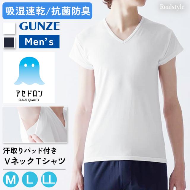 新作 グンゼ GUNZE アセドロン Tシャツ メンズ 半袖 Vネック 汗取りパッド付き 速乾 抗菌 防臭 肌着 下着 インナーシャツ MCA612P ブランド
