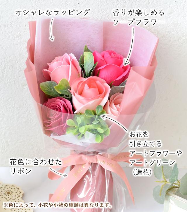 即日発送 ソープフラワー 花束 サンク・ローズ 5輪ブーケ 選べる ピンク ブーケ 花 誕生日 プレゼント 男性 結婚祝い 同僚 フラワーギフト おしゃれ 可愛い お誕生日 結婚記念日 子供 プレゼント ゴージャス シャボンフラワー お歳暮 冬ギフト クリスマス いい夫婦の日 お正月