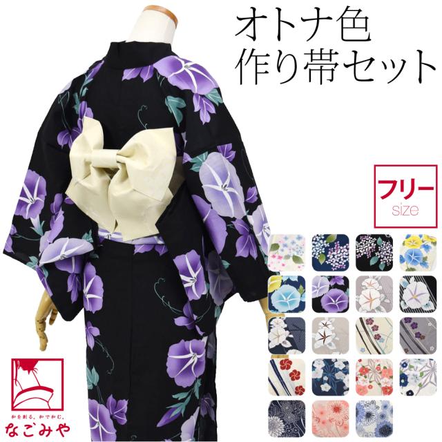 浴衣 セット レディース 夏用 シック 浴衣 作り帯 2点セット レトロ 古典柄 かわいい 高見え 夏祭り 夕涼み 花火 おしゃれ 大人 レディース 女性 10024599