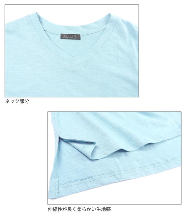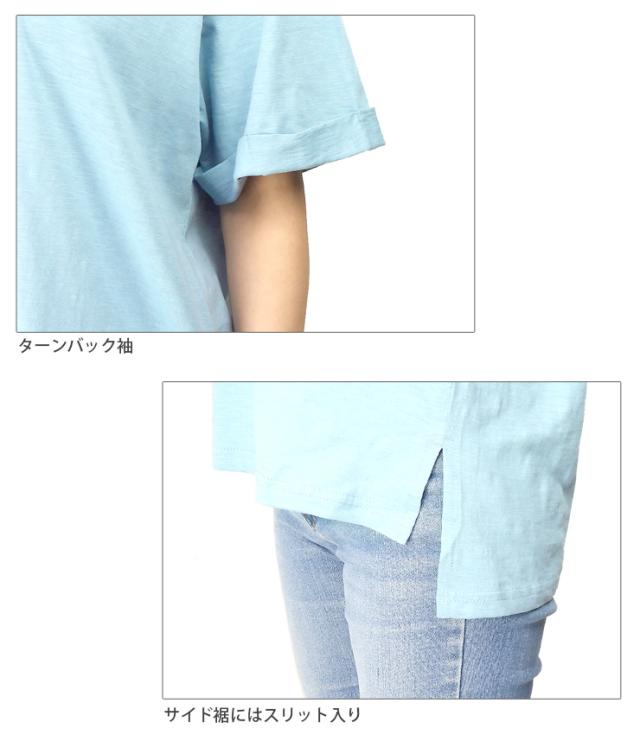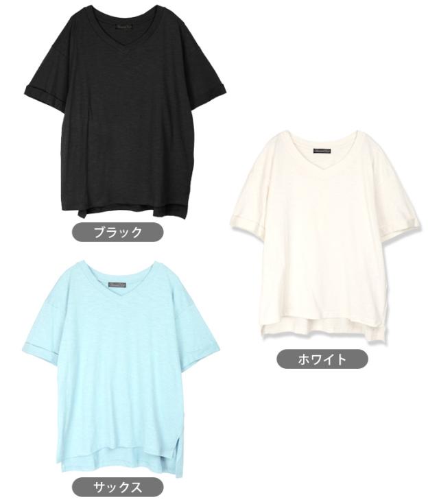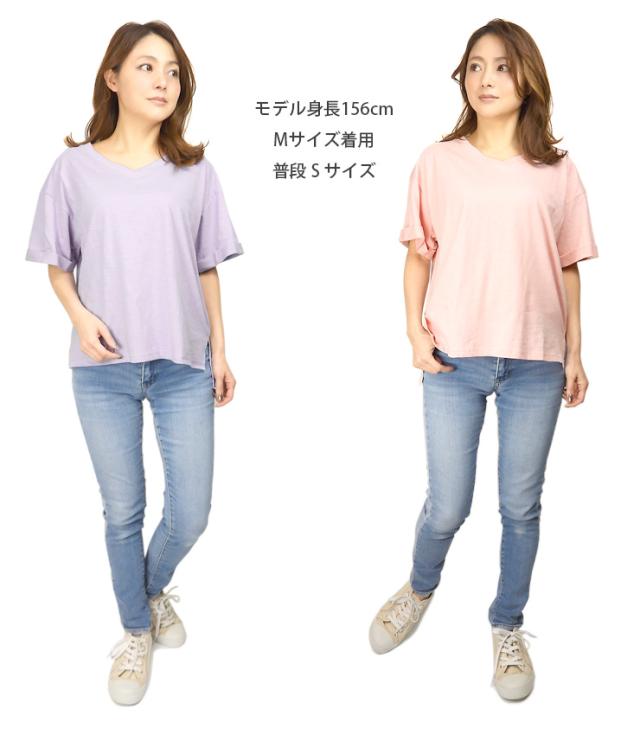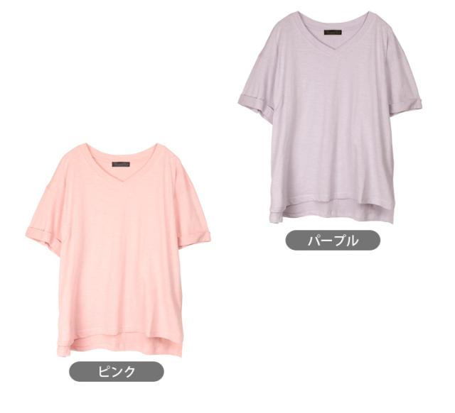 【メール便送料無料】Vネック コットン 半袖 BIG Tシャツ M L レディース 春夏秋 全5色 YN24-106-2 シンプル 無地 カットソー トップス 綿100% コットン100% 半そで ターンバック袖 黒 白 青 紫 ブラック ホワイト サックス パープル ピンク 2865