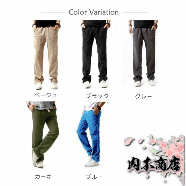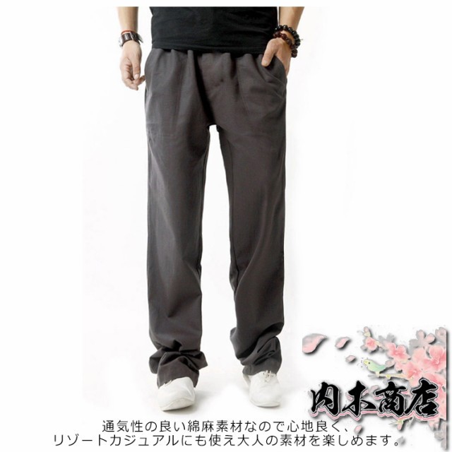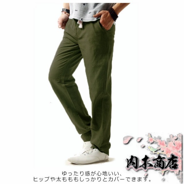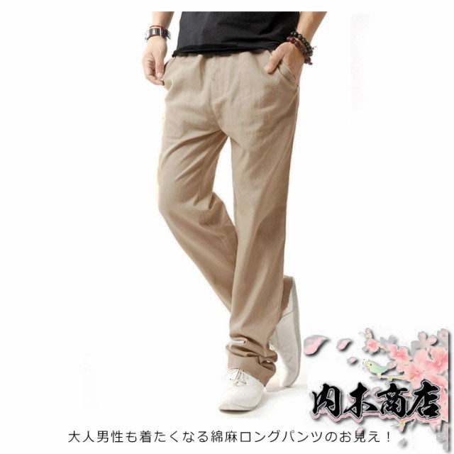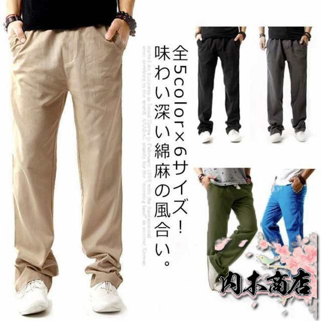 送料無料 全5色×6サイズ!綿麻パンツ メンズ 麻混 ロングパンツ リネンパンツ 薄手 カジュアルパンツ ストレート パンツ ロング丈 ゆったり ボトムス コットンリネン 春夏 夏 メンズファッション