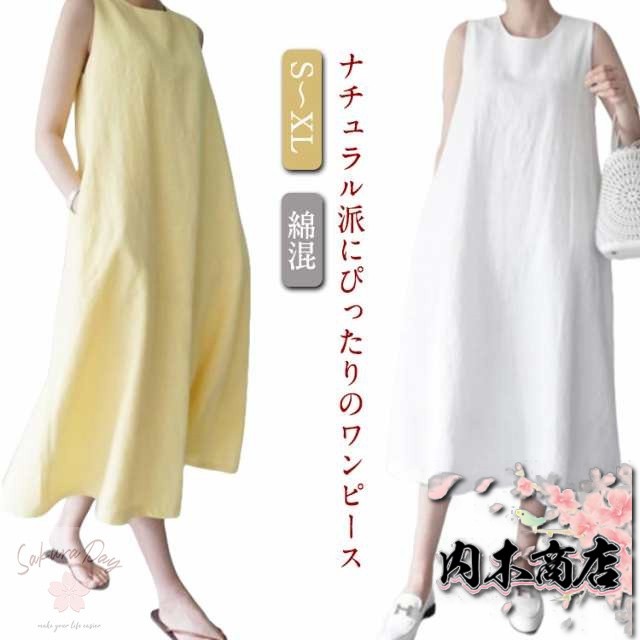 ワンピース ノースリーブワンピース マキシ丈 夏 ロングワンピース ノースリーブ 大人女性 マキシワンピース 無地 春夏 ロング ワンピ 綿 シンプル ナチュラル 大きいサイズ ナチュラル ラウンドネック かわいい 通勤 きれいめ ワンピース