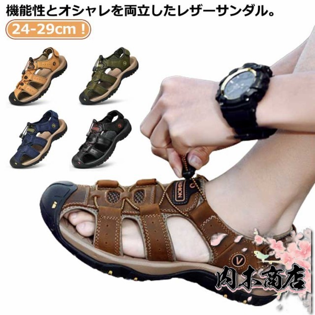 | 24-29cm!機能性とオシャレを両立したレザーサンダル。 便利なマジックテープ。簡単にサイズを調整できます。 軽量で通気性抜群。軽量で歩きやすく足のムレも防ぎます。 安心のつま先保護。フロント部分はつま先をしっかり保護してくれるラバープロテクション付き。 アウトソールは滑りにくい防滑仕様なので、滑りやすい岩場や川遊び、海などにもオススメです。 水陸両用で、タウンからウォーターサイド、アウトドアやフェス、トラベルやレジャーに最適です。 | |