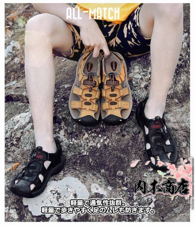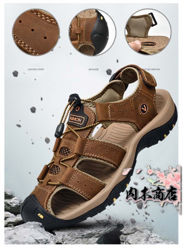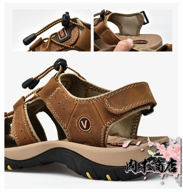 スポーツサンダル メンズ サンダル アウトドアサンダル 革 夏 つま先保護 マジックテープ コンフォートシューズ レザーサンダル 男性 ビーチサンダル 大きいサイズ 涼しい 歩きやすい 登山サンダル 防滑 速乾 通気性 カジュアル 耐久性抜群 水陸両用 父の日 ギフト
