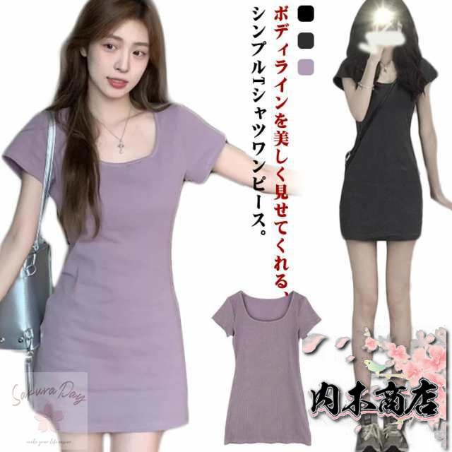 カットソー Tシャツワンピ 半袖 レディース チュニック タイトワンピ 半袖ミニワンピース インナー tシャツワンピース 夏 丸首 春 クルーネック 大人 ワンピース 細見え 着痩せ 無地 きれいめ ルームウェア おしゃれ オフィス 通勤 薄手 ミニワンピース