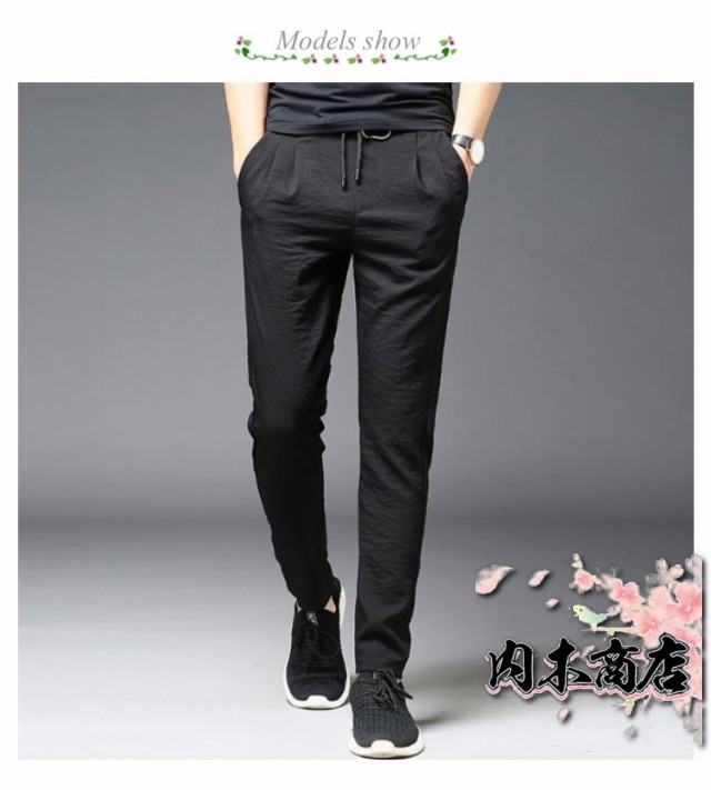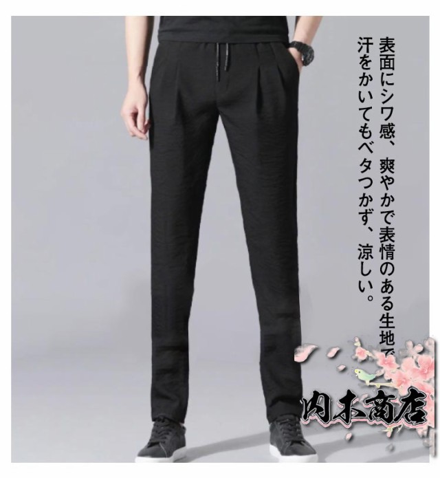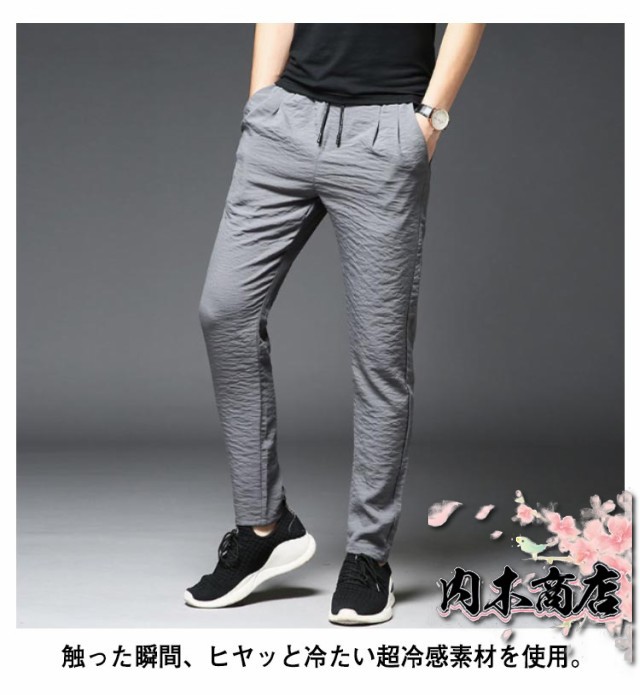 おしゃれ メンズ 通気 吸水速乾 冷感パンツ 接触冷感 アイスシルク ロングパンツ シワ感 薄手 ひんやり 涼しい ストレートパンツ 細身 スキニーパンツ 夏 ゴルフパンツ カジュアル スポーツパンツ 無地 大きいサイズ イージーパンツ 春 秋 送料無料
