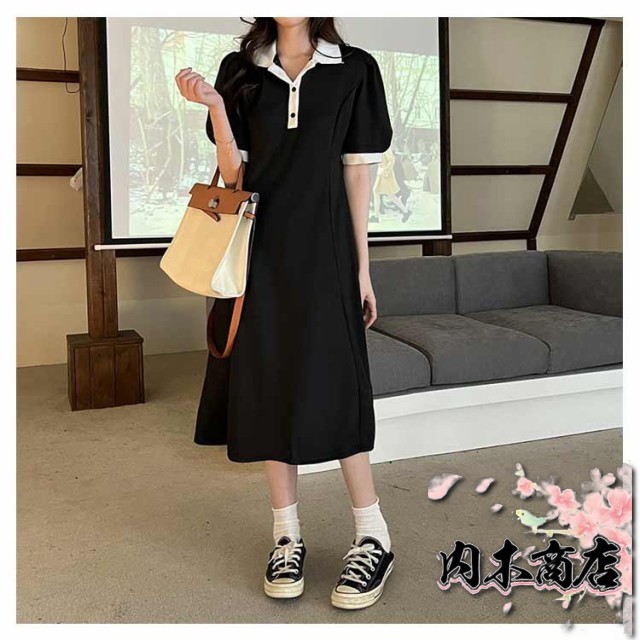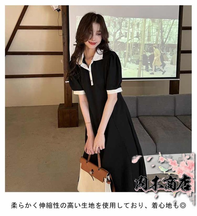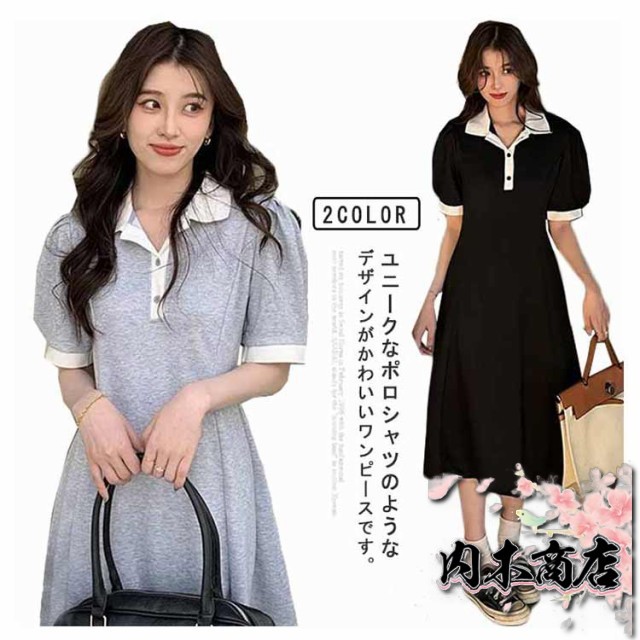 レビュー高評価 話題商品 レディース 秋の新作特集 品質安心 配色 パフスリーブ 大きいサイズ 夏 スポーティー カットソー ワンピース カジュアル ポロワンピース ポロ衿 ミモレ丈 ポロシャツ 襟付き Aライン ポロシャツ風 半袖 お買い得プライス