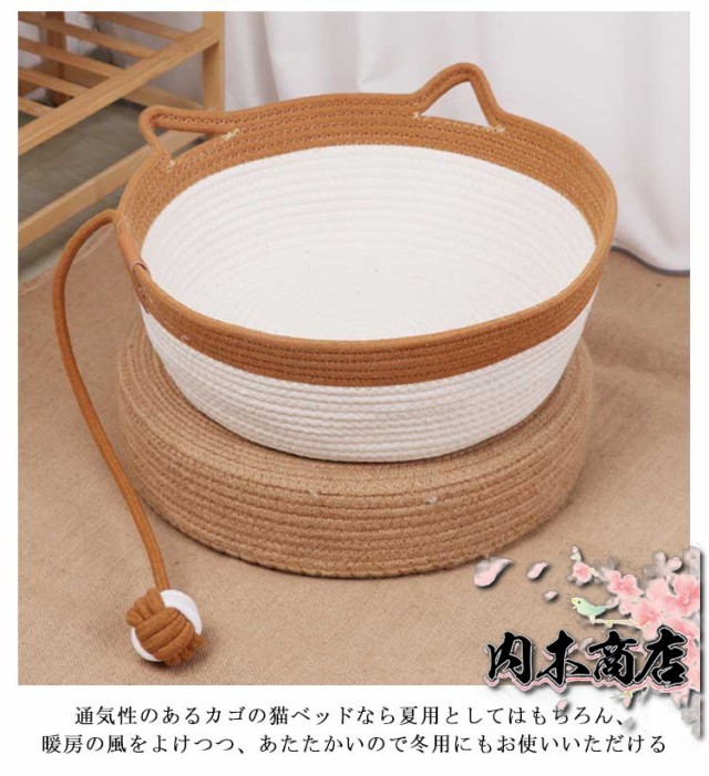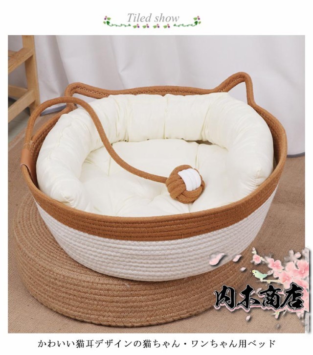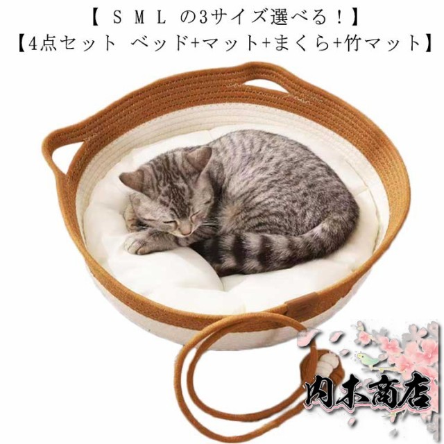 | 【 S M L の3サイズ選べる!】 【4点セット ベッド+マット+まくら+竹マット】 かわいい猫耳デザインの猫ちゃん・ワンちゃん用ベッド 綿を編んだデザインは高見えすること間違いなし! ネコちゃんが爪を研いでしまっても壊れにくく長期間ご愛用できる設計 通気性のあるカゴの猫ベッドなら夏用としてはもちろん、暖房の風をよけつつ、あたたかいので冬用にもお使いいただける 季節によってクッション替えてあげれば春夏は涼しく、秋冬はあったかなペット用の寝床 | |