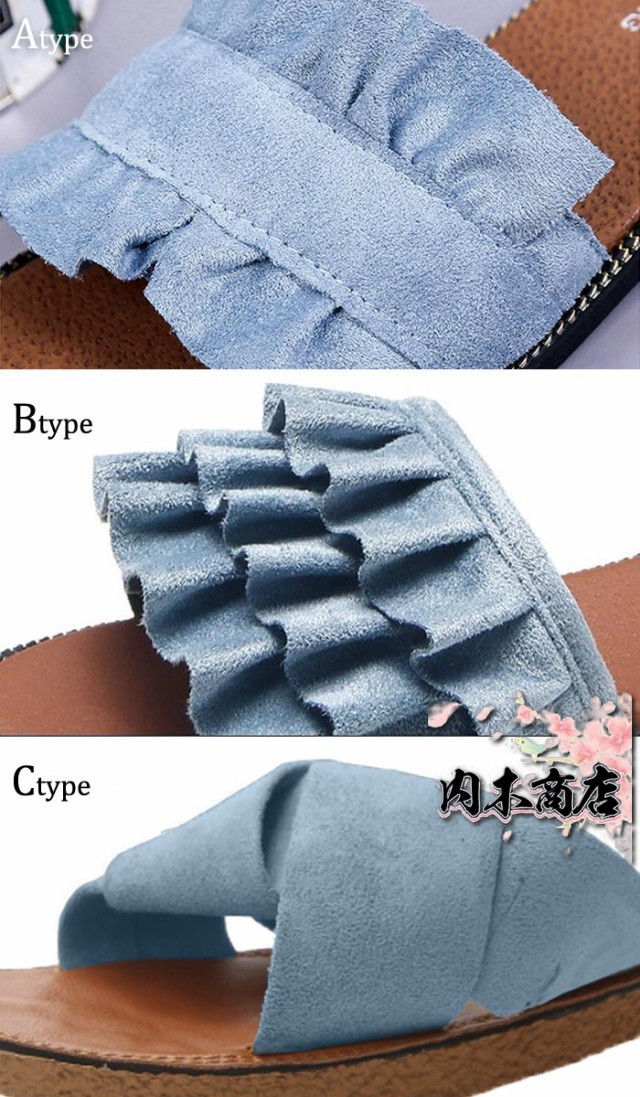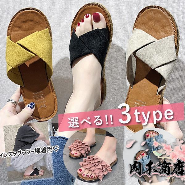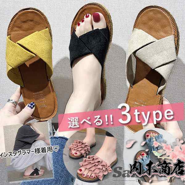選べる3タイプ サンダル 夏サンダル フリル フラット スリッパ ぺたんこ レディース