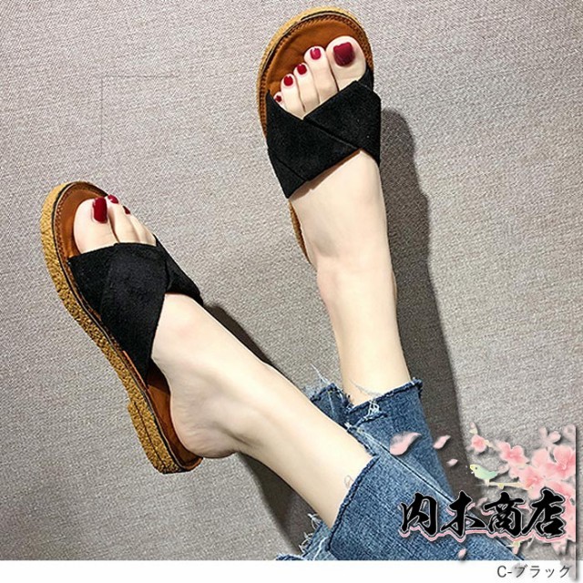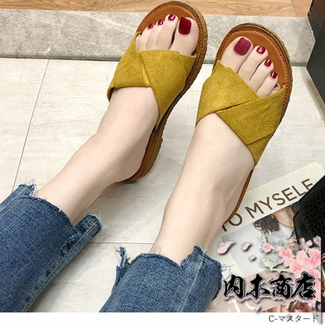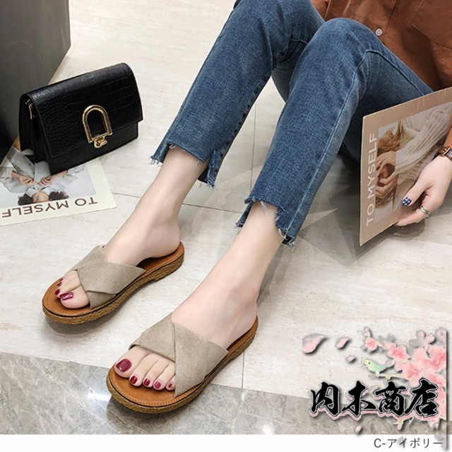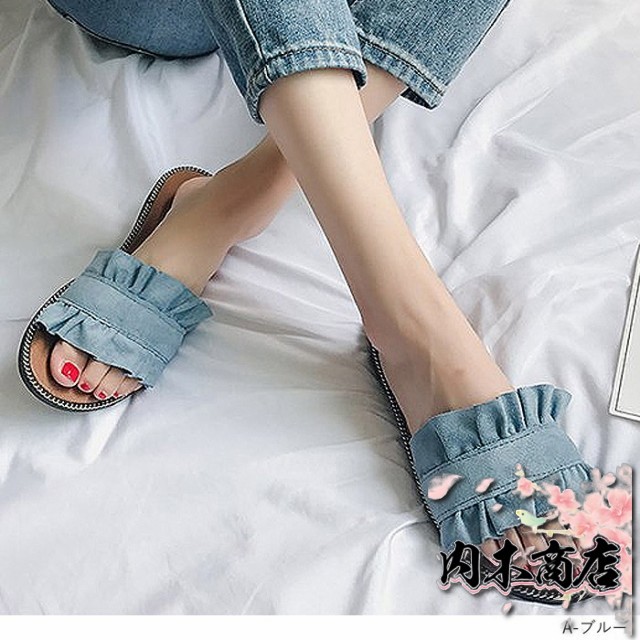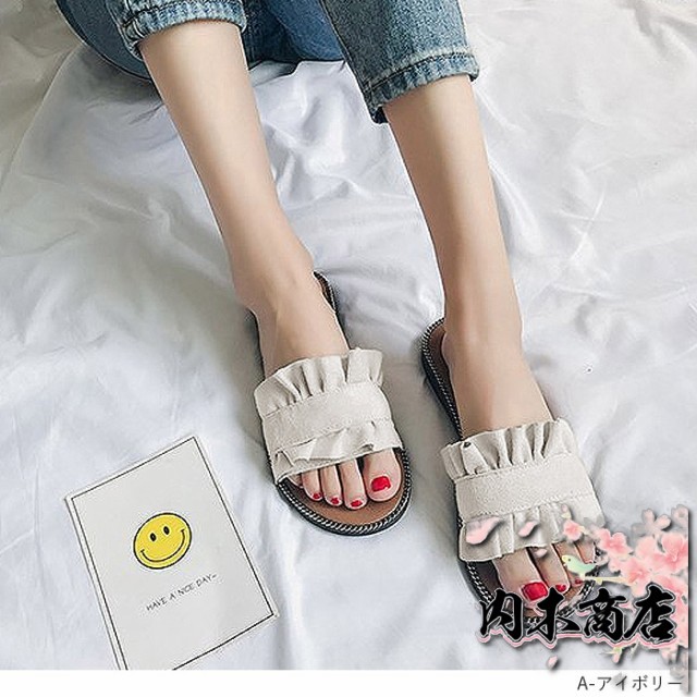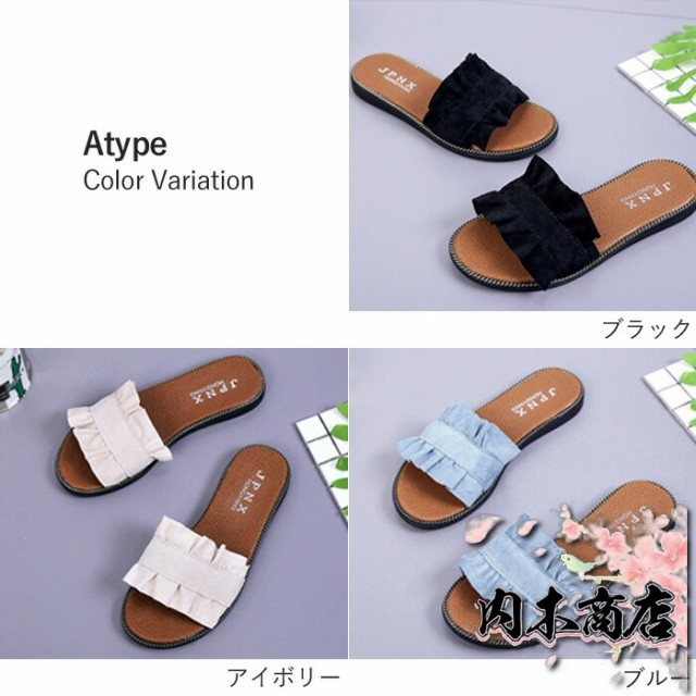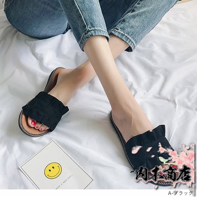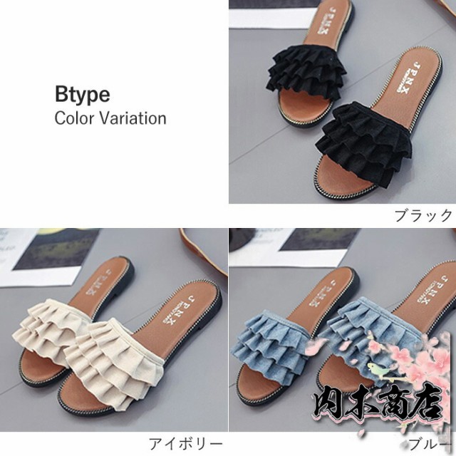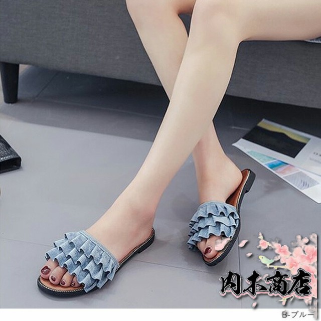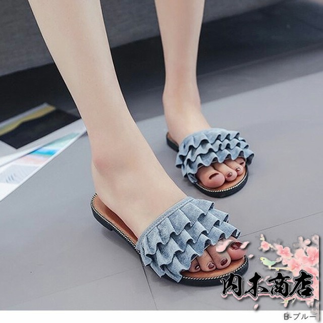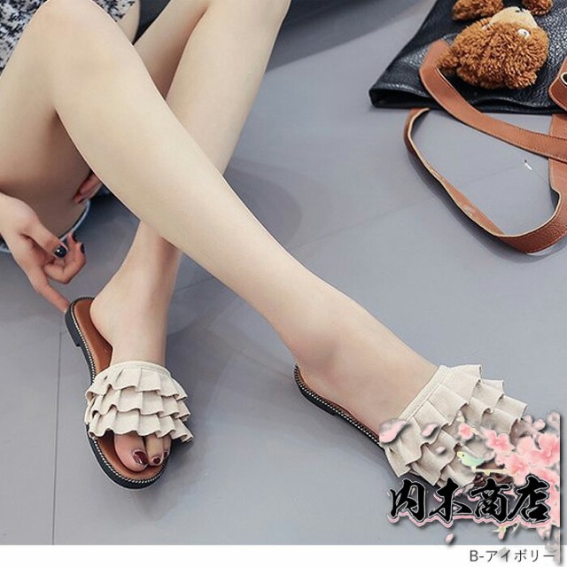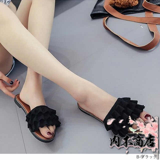 売上急増中 数量限定入荷 レディース[郵3]^bo-524^ 在庫限りの大特価 ギフトにも最適 サンダル ぺたんこ フラット ミュールサンダル 夏サンダル 収納便利 フリル 送料無料 クリスマスギフト