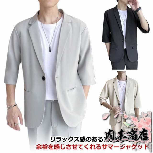 テーラードジャケット 夏 7分袖 メンズ サマージャケット 接触冷感 カジュアルスーツ 紳士 ジャケット 薄手 スーツ ジャケット 単品 春 夏 アウター 冷房対策 羽織り 通勤 ビジネス 大きいサイズ おしゃれ 上品 父の日 プレゼント ギフト 送料無料