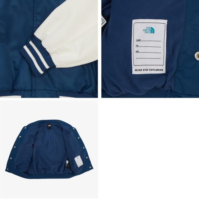 ノースフェイス キッズ ボンバージャケット ジャケット ノーカラージャケット MA-1 MA1 ボタン開閉 ロゴ カジュアル ストリート ブルー