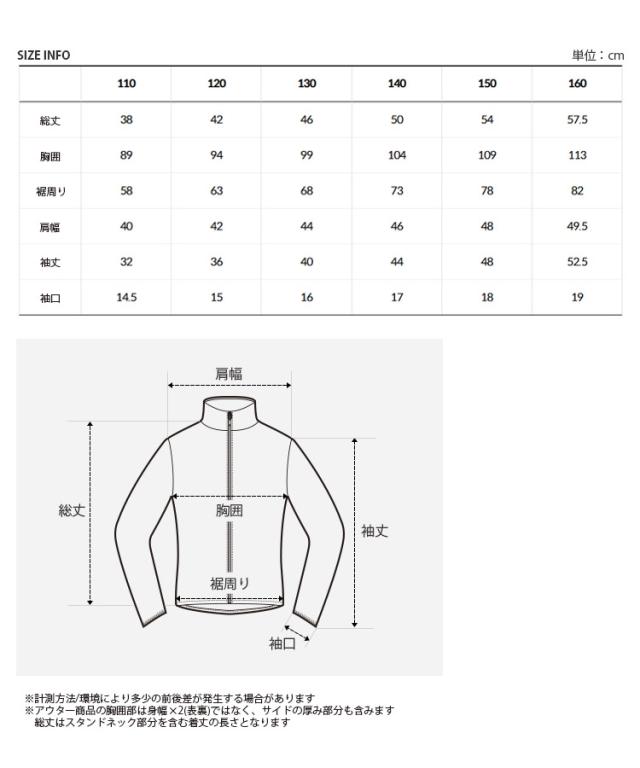 襟、袖口、裾:ポリエステル98% ポリウレタン2%