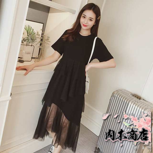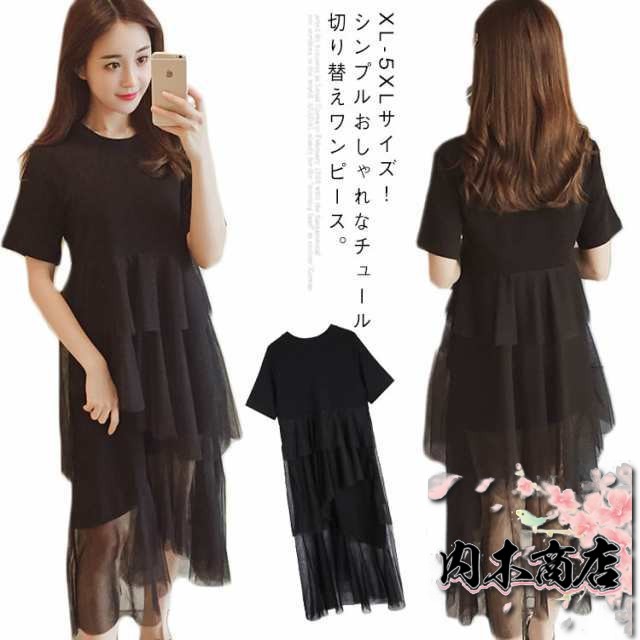 XL-5XLサイズ!ティアードワンピース 半袖 ワンピース チュール切り替え 半袖ワンピース 夏ワンピース ティアード ハイウエスト チュ