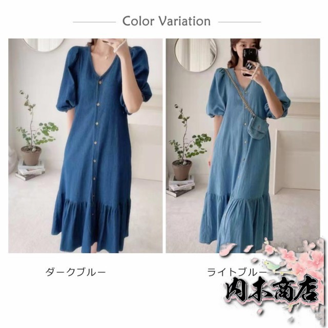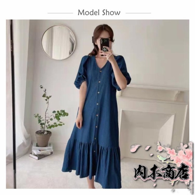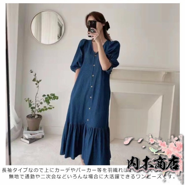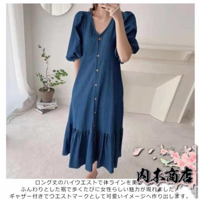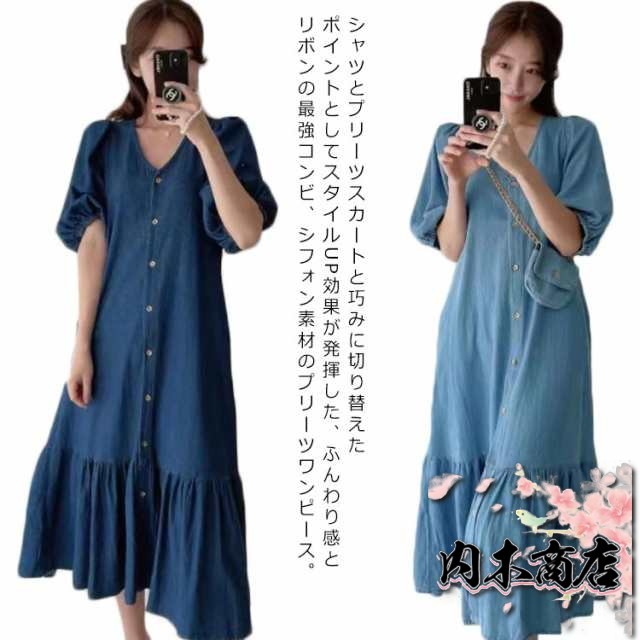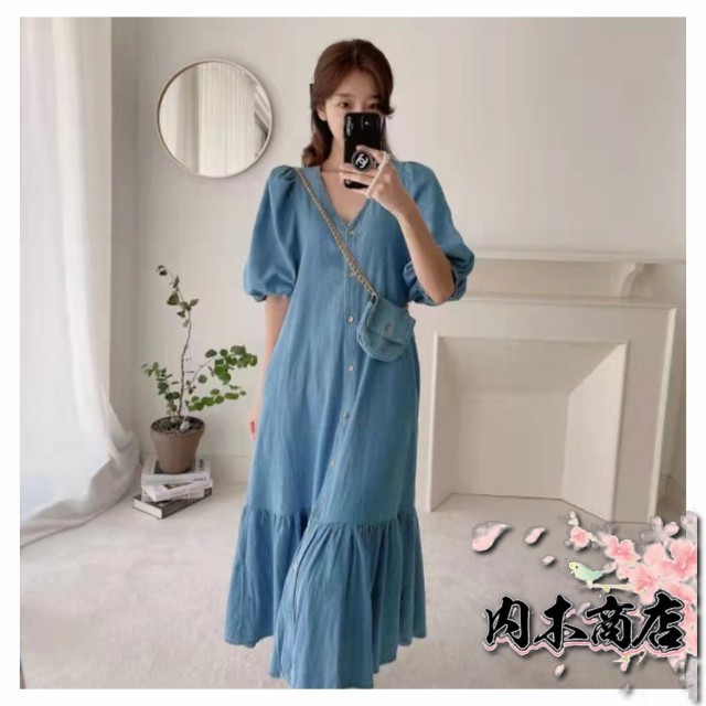 即納OK 売上急増中 レディース 通勤 カジュアル 春夏ワンピース きれいめ OL お出かけ デニムワンピース 膝丈ワンピース 半袖 パフスリーブ 薄手ワンピ Vネック シャツワンピース ワンピース 大人 マーメイドライン デニム 送料無料