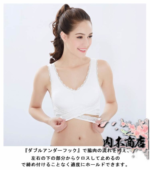 | 締め付け感がなくノンストレスの適度なホールド力! 『ダブルアンダーフック』で脇肉の流れを抑え、 寝ている間にバストをケアできるノンワイヤーナイトブラです。 『ダブルアンダーフック』が寝ている間もバストを支えるので「胸の横広がり」「ハミ肉」を防止しバストラインをキープ! 左右の下の部分からクロスして止めるので締め付けることなく適度にホールドできます。 肌あたりの柔らかな素材でお休み中もリラックスタイムもストレスフリーの優しい付け心地です。 脇下全体を包み込むので安心感のある設計。 脇肉の流れを防止しフロントもバックスタイルもスッキリきれい! 3段階ホックタイプなので、その日の体調や気分に合わせて、サイズ調整できます。 取り外し可能なパッド入り。薄手の服を着た時でも安心感があります。 伸縮性がある生地でふんわり優しいつけ心地。 サラッと乾きやすいので、汗をかくスポーツでのご使用にも最適です。 | |