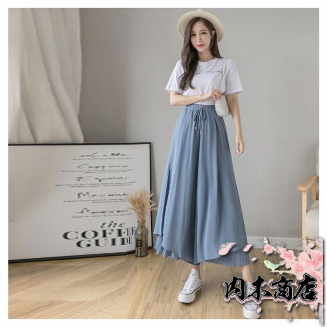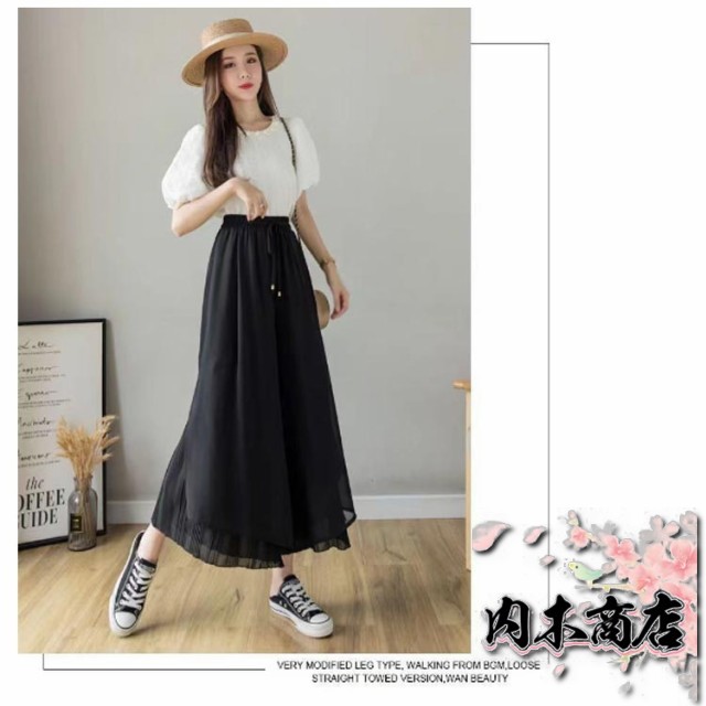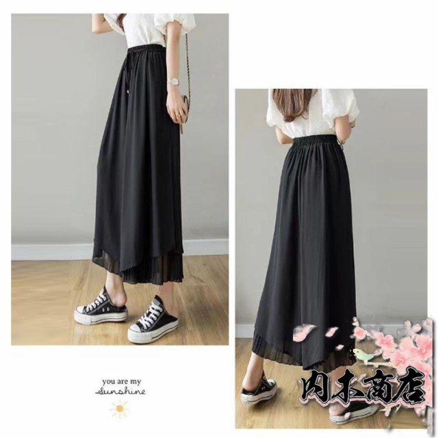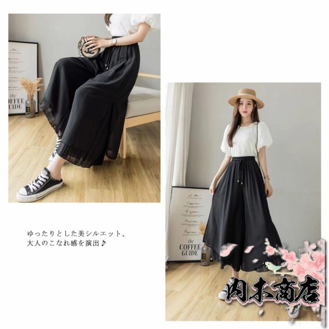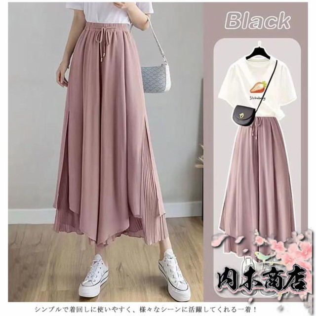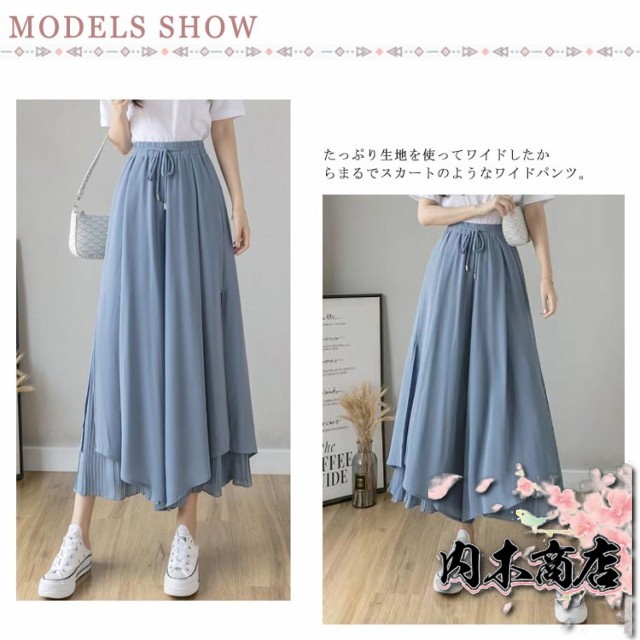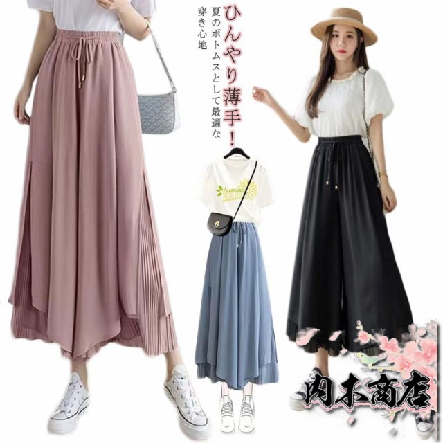 おしゃれ シンプル レディース 通勤 プリーツパンツ ワイドパンツ 春夏 ウエストゴム スリット 切り替え 7分丈 ひんやり 薄手 スカーチョ ロング丈 プリーツスカーチョ シフォン ガウチョパンツ ロング プリーツ 大きいサイズ 無地 ふんわり OL