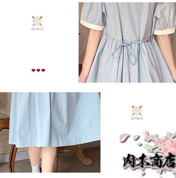 ワンピース ビッグカラー セーラー風 胸元リボン 半袖 夏用 夏服 かわいい レディース 中学生 ゆったり フリル裾 デコ襟 大きいサイズ Tシャツワンピース ロリータ ミモレ丈 カットソー ワンピース リゾートワンピース マキシ丈 海 サマー ブルー
