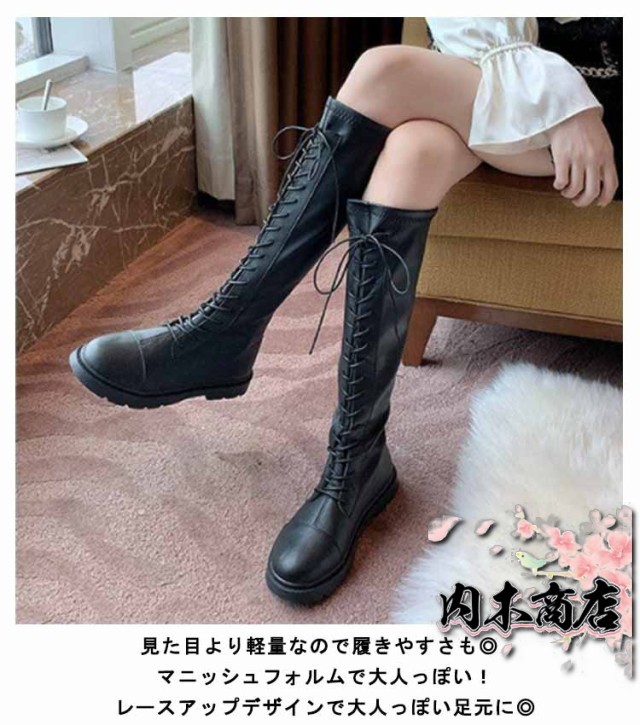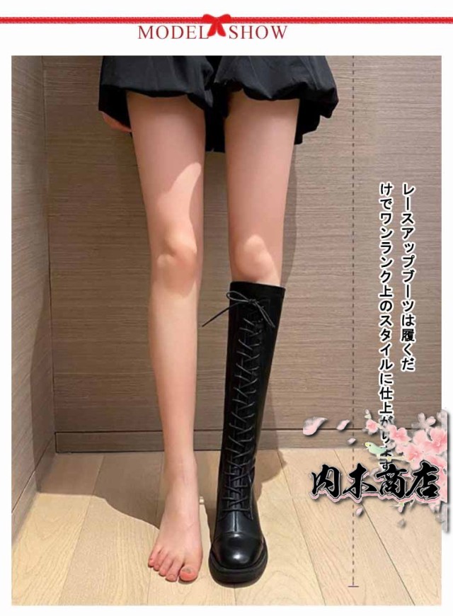 | オシャレ女子必見!最旬レースアップロングブーツ! レースアップブーツは履くだけでワンランク上のスタイルに仕上がります。 見た目より軽量なので履きやすさも◎ マニッシュフォルムで大人っぽい! レースアップデザインで大人っぽい足元に◎ バックにはフルジップを採用しているので、ファスナーでスムーズな着脱も可能です。 筒部分の裏側からつま先まであったか裏起毛タイプあります。 ミニ丈ボトムやパンツINするのはもちろん、ワンピースやロングスカートにレイヤードして履くのも今年流◎ 韓国ファッションやストリートコーデにもオススメです。 | |