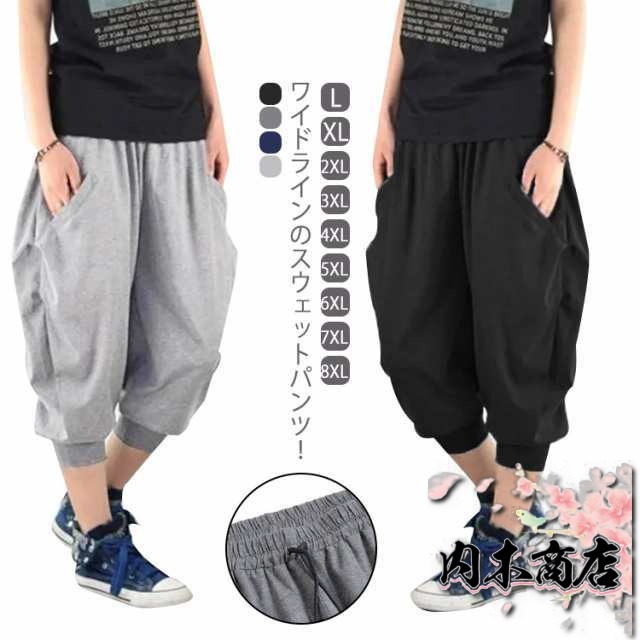 サルエルパンツ メンズ 大きいサイズ 6XL 7XL 8XL 春夏 スウェットパンツ 7分丈 パンツ メンズ スウェット パンツ リラックスパンツ クロップドパンツ ルームウェア 部屋着 アラジンパンツ テレワーク L XL 2XL 3XL 4XL 5XL