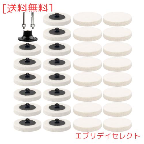 ポリッシャーバフセット内容:30枚 フェルト バフ、1個 ディスクブラケット、1個金属六角軸、1個 金属丸シャフト,フェルトバフはユニークな安全トルクネジがあり、ツールで簡単に取り外すことができます,
