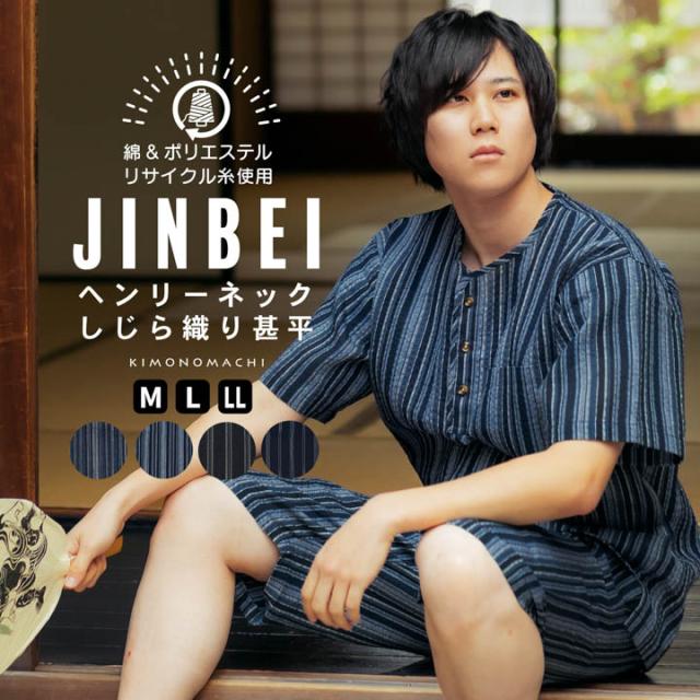 メンズ甚平 ヘンリーネック甚平 リサイクル糸 SDGs サステナブル 綿ポリエステル M L LL おしゃれ 父の日 敬老の日 男性 プレゼント 涼やか 上下セット ルームウェア 部屋着 セットアップ じんべい じんべえ 親子コーデ