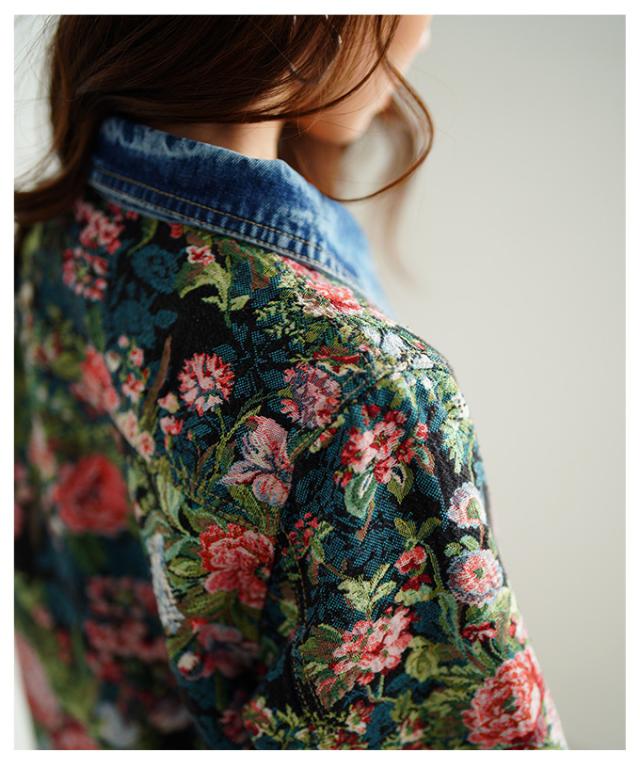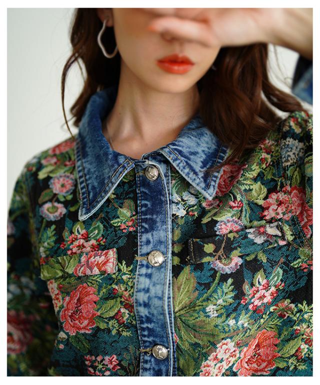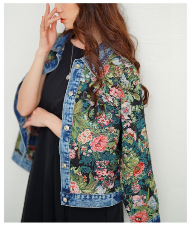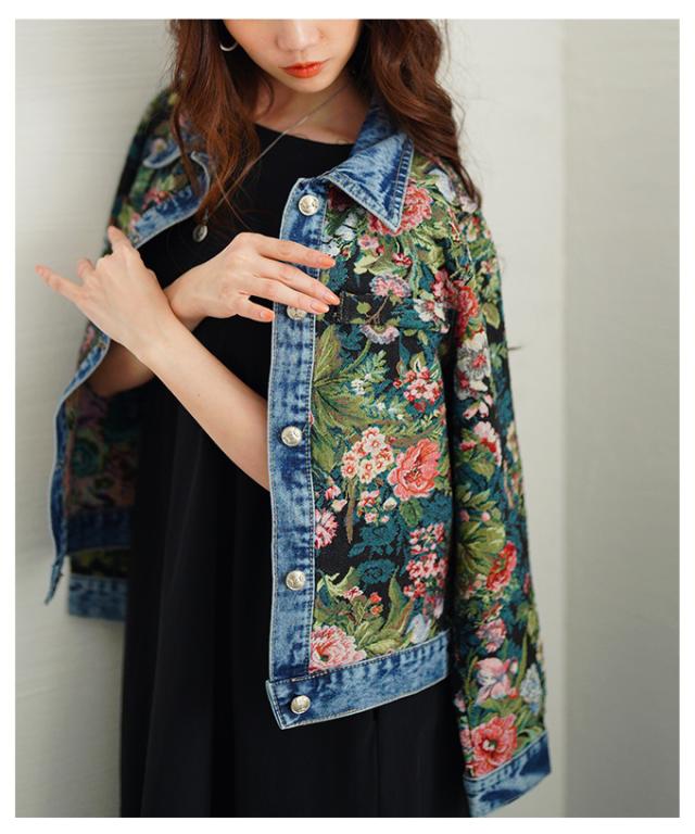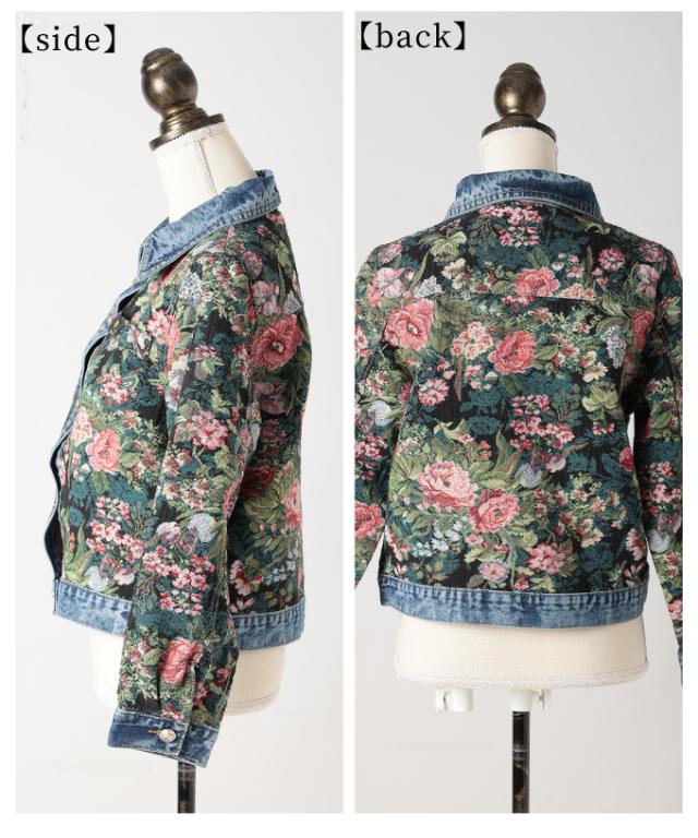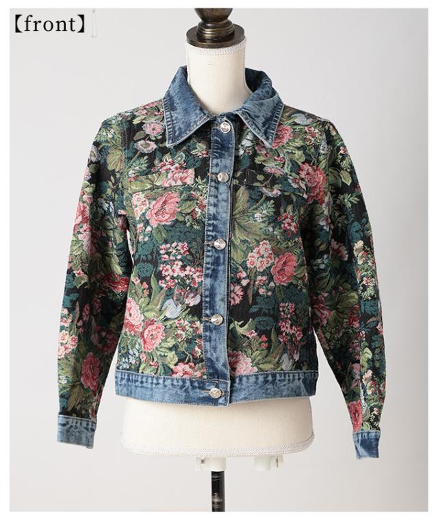 冬新作 レトロな世界へ誘うフラワープリントデニムジャガードジャケット レディース ファッション アウター ジャケット 羽織り 大人可愛い 40代 レディースファッション 50代女性 ファッション 60代 ミセスファッション サワアラモード sawaalamode otona almam-74019