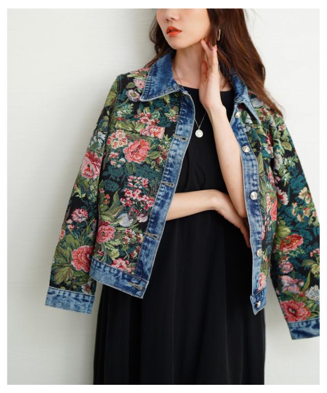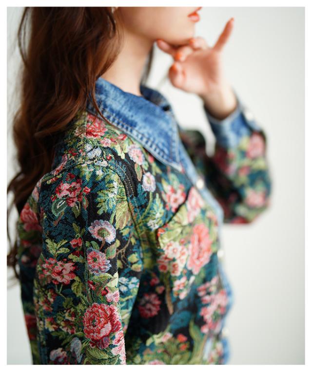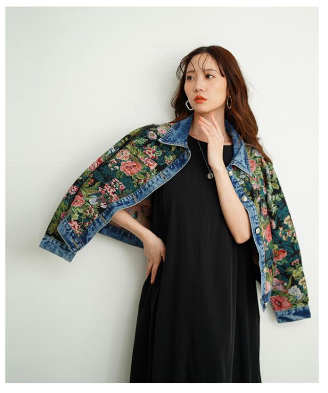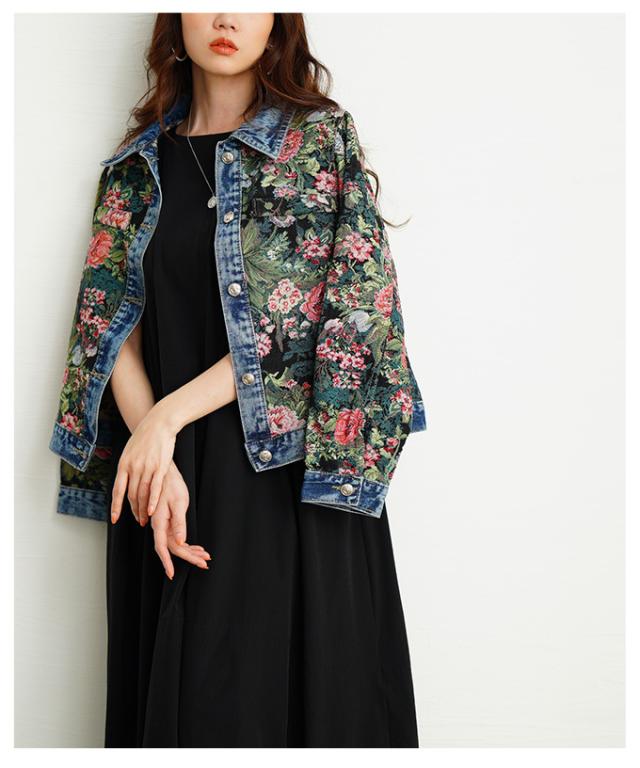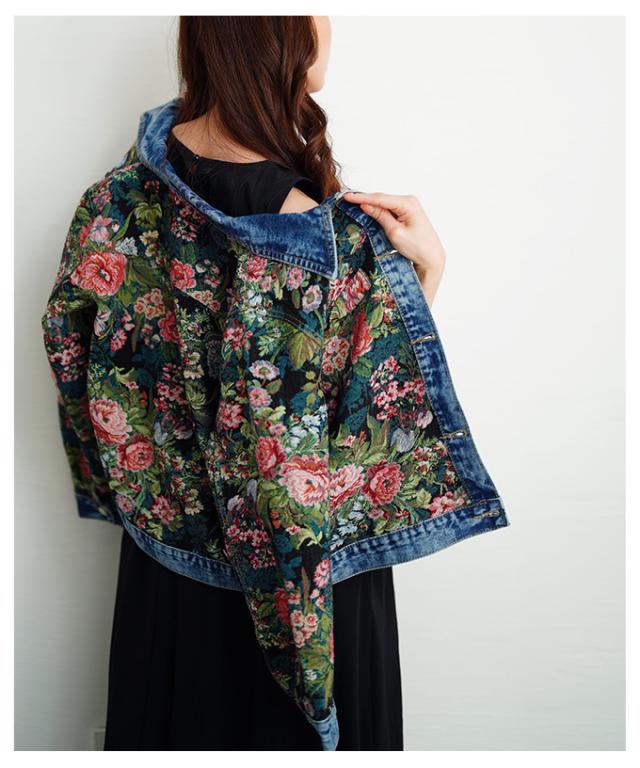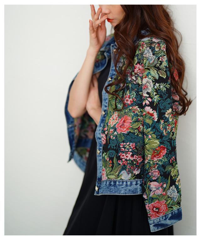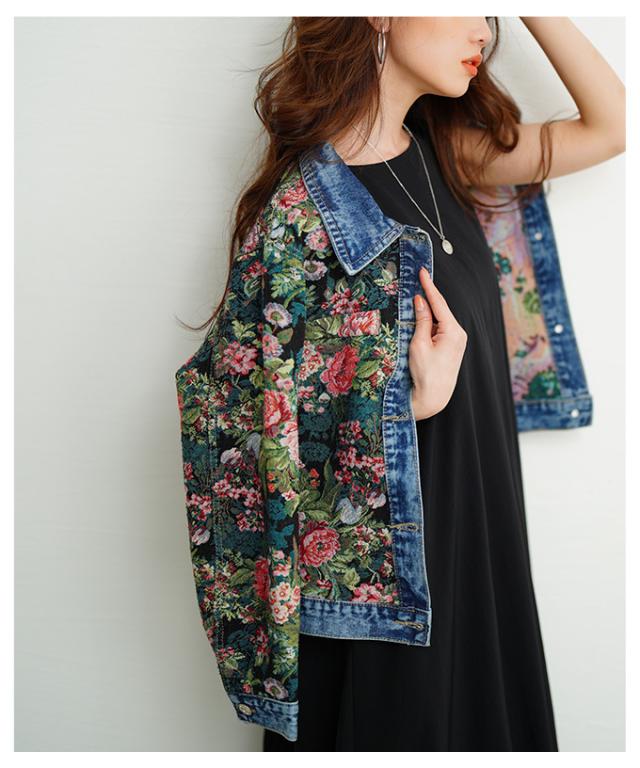 冬新作 レトロな世界へ誘うフラワープリントデニムジャガードジャケット レディース ファッション アウター ジャケット 羽織り 大人可愛い 40代 レディースファッション 50代女性 ファッション 60代 ミセスファッション サワアラモード sawaalamode otona almam-74019