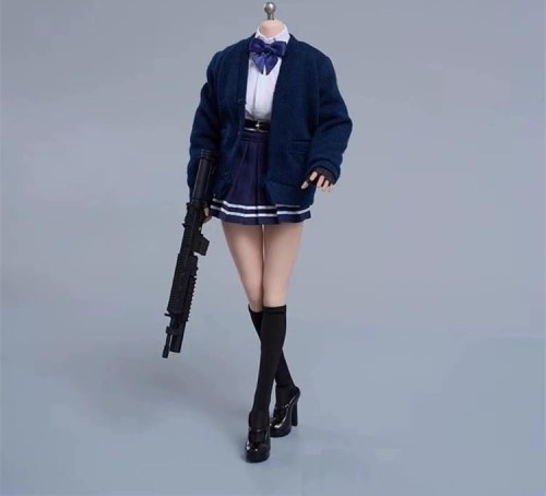 [TOYBARJAPAN ]1/6スケール アクションフィギュア用 cdtoys cd062 女子高生セーラーファッション 学生カーディガンJKスカートスーツ服とストキングと靴セット(素体とヘッドは含みません) (Eネービー)