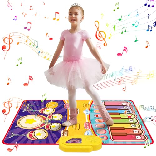 ピアノマット おもちゃ Skirfy ダンスマット 子供向け 知育玩具 2in1遊び方 鍵盤楽器 ドラムモード 折り畳み式 子供 誕生日 クリスマス プレゼント 13曲デモ 8鍵盤 8種類楽器音 ミュージックマット 録音再生機能 音量調整可能 ピアノおもちゃ 防水素材 滑り止め 親子ゲーム 女の子 男の子 ギフト 日本語説明書付き DW802