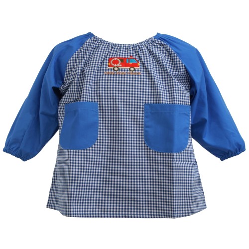 [すまいるまこ] スモック 長袖 ノーアイロン 130cm 幼稚園 保育園 入園準備 男の子 消防車 ブルー