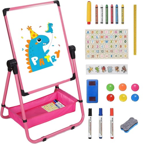 お絵かきボード 子供用 黒板 ホワイトボード イーゼル 鉄製 折りたたみ式収納 収納袋付き高さ調節可能63-107cm 両面使用 落書き 黒板/ホワイトボードサイズ43*63cm 360度回転 子供の贈り物 大人用 子供 日本語取扱説明書付き(ピンク)