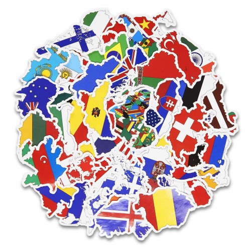Haruhanaバラエティーステッカーシリーズ シール ビンテージ スーツケース 防水紙 スーツケース スケートボード ノート 車 バイク ヘルメット 自転車 パソコン ギター ベース 楽器等に 万国旗 ナショナルフラッグ / 50枚セット