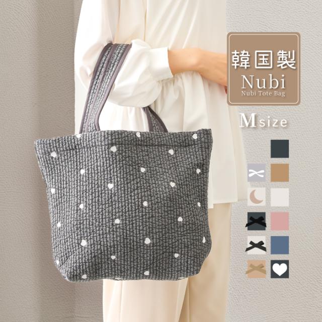 ヌビバッグ Mサイズ トートバッグ マザーズバッグ 刺繍 リボン ハート 月 かわいい マチあり 綿100% 韓国 韓国製 イブル ヌビ キルティング バッグ 洗える レッスンバッグ ママバッグ 大容量 軽量 出産
