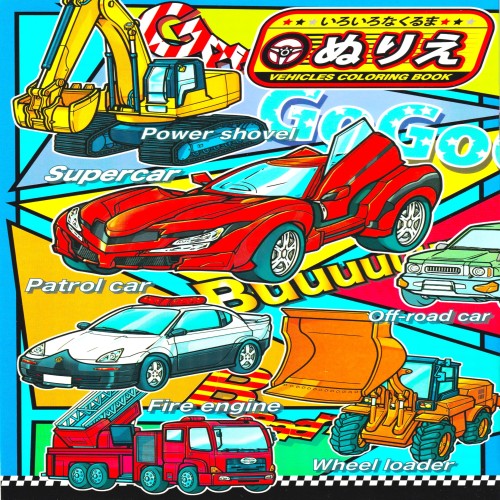 ぬりえ サイズ:18.2cm×25.1cm 全32ページ ぬりえをぬることでいろんなくるまをたのしく学べるおけいこぬりえです。 お稽古用