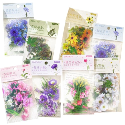 moin moin シール ステッカー 花 大量 160種 320枚 セット 透明 リアル 押し花 ヒマワリ バラ チューリップ スイセン マーガレット ラベンダー キキョウ コスモス 緑 黄 青 ピンク 白 紫 ご褒美 スケジュール 手帳 アルバム ペット 子供 デコ 手紙 カレンダー 2502sl349