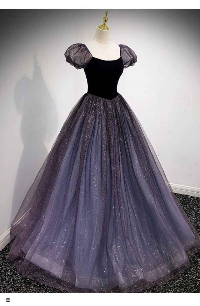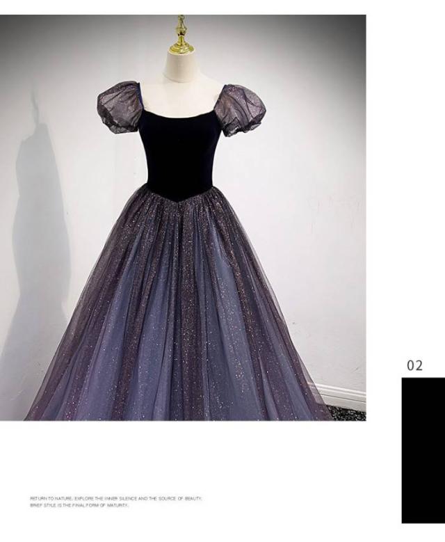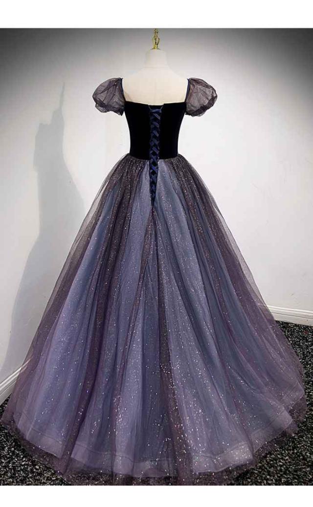 イブニングドレレス 編み上げタイプ エレガント ドレス パーティー ロングドレス ワンピース 紫色 星空 キラキラ 春夏秋 新作品
