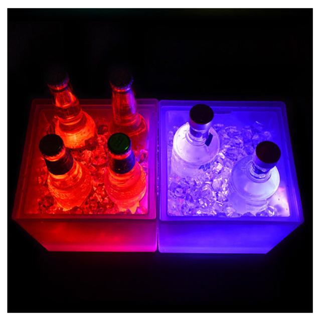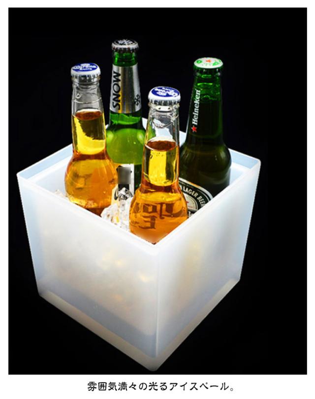 LED 電池式 キューブ型 光る 氷バケツ アイスペール 光る おしゃれ アイスバケット 氷ビール ボトルクーラー シャンパンクーラー 保冷容器 氷容器 氷入れ 家庭用 業務用 お酒 二重構造 パーティー キャンプ 飲み会 バー 発光 雰囲気作り