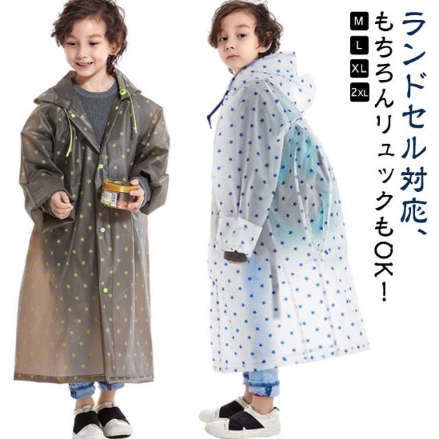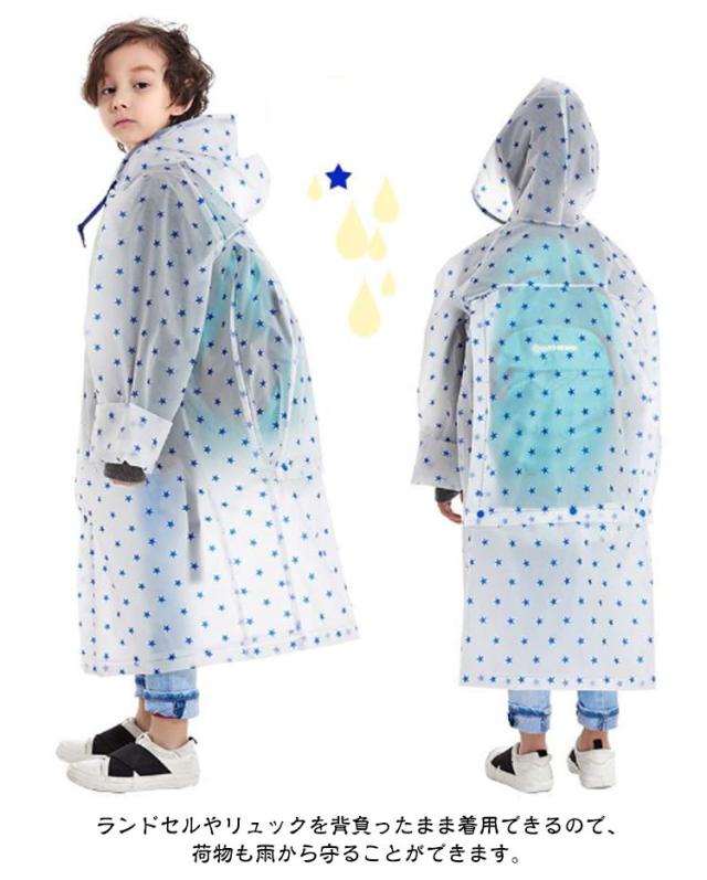子供 半透明 レインポンチョ 星柄 かわいい 防水 入学 レインウェア 女の子 ランドセル レインコート キッズ レインコート 軽量 子供用 雨の日 リュック 男の子 撥水 ランドセル対応 梅雨対策 入園 対応 通学 保育園 小学生 110cm 120cm 130cm 140cm